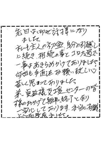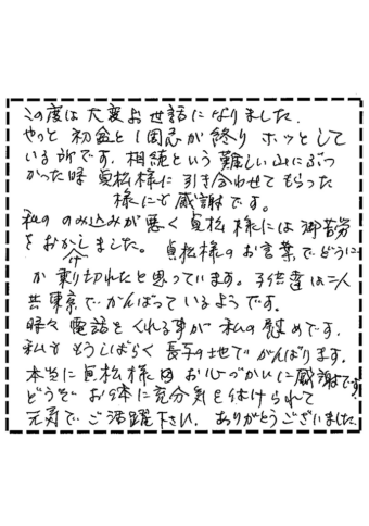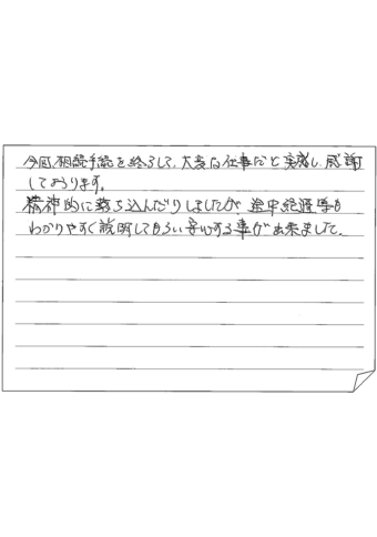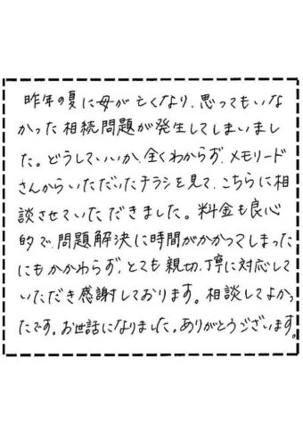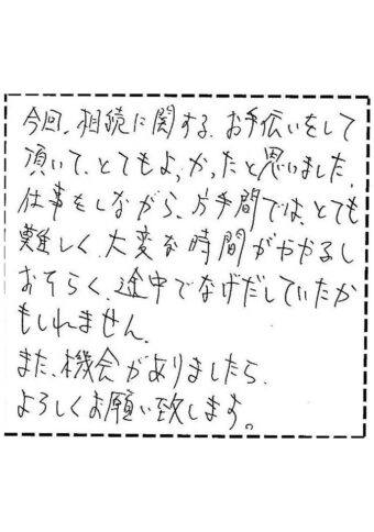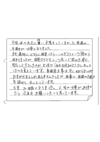 今回、相続に関するお手伝いをして頂いて、とてもよかったと思いました。