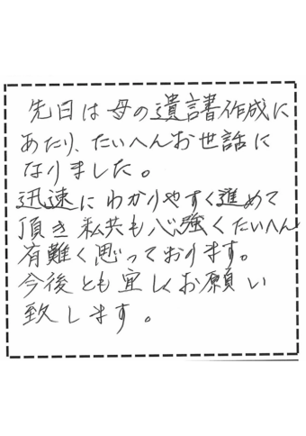 先日は、母の遺言書作成にあたり、たいへんお世話になりました。